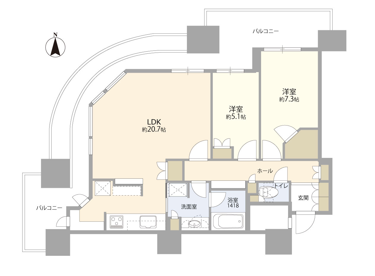 2DK / 76.56㎡ / 2008年10月築 / 6階
